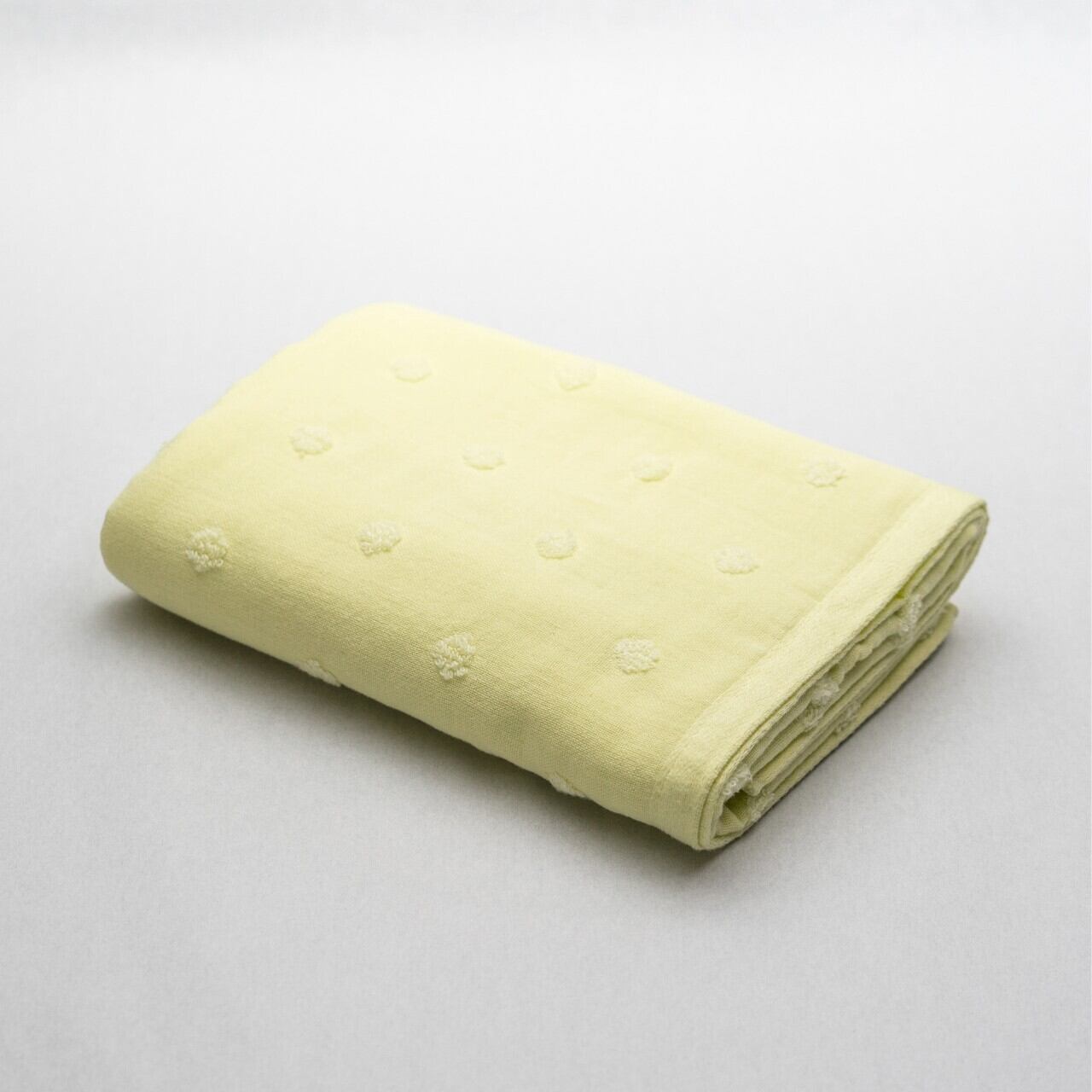 名水百選に選ばれた四国山脈の伏流水を使用し、飲料用のハーブで染め上げています。酵素や純石鹸を使用しているので肌に優しく、安心して使用することができます。表ガーゼ・裏パイルで心地よく、吸水性抜群です。水玉模様をあしらった可愛いデザインになっています。洗濯しても硬くなりにくく、タオルの柔らかさが持続します。ハーブ染めならではの優しく暖かみのある商品です。